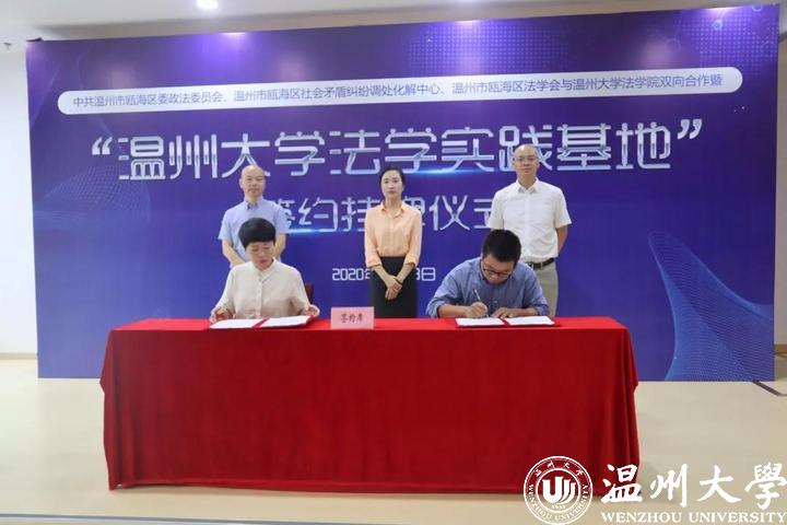 9月18日上午,瓯海区矛盾纠纷调处化解中心与黄色视频 合作签约暨“黄色视频 法学专业实践教学基地”揭牌仪式举行。瓯海区区委副书记钱素文参加仪式并致辞,黄色视频 院长王宗正、副院长周湖勇等参加仪式。