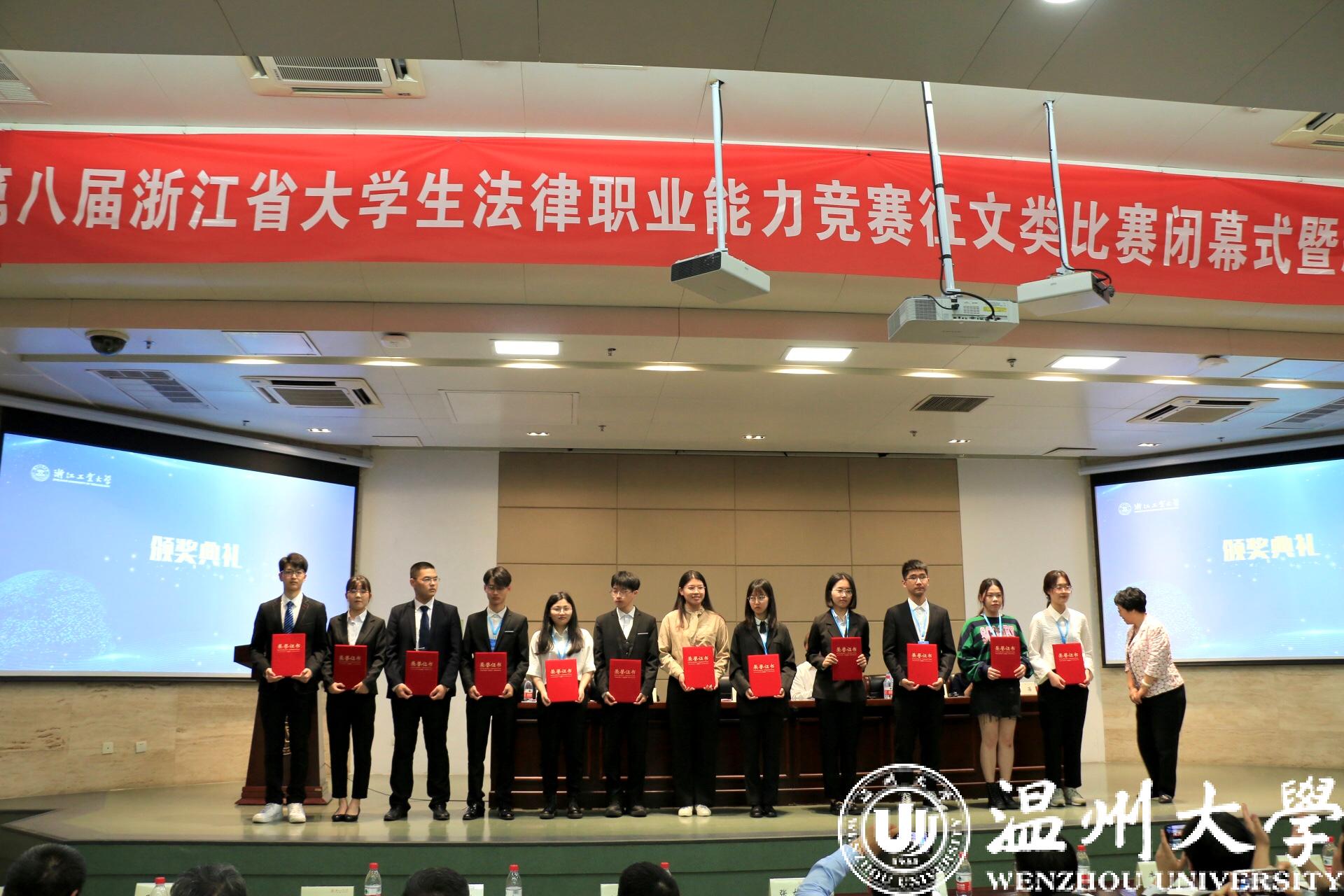 据悉,浙江省大学生法律职业能力竞赛是国内首创且为目前国内唯一常规举行的综合类法律专业赛事,也是我省专业性最强、赛事规模最大、最具权威的法科大学生科技竞赛,法律征文赛每两年举行一次。比赛的目的是为培养具有创新精神和实践能力的卓越法律人才,促进浙江省法科大学生综合素质的全面提升,提高人才培养质量,活跃校园气氛、开拓思想,展现大学生朝气蓬勃、积极向上的精神风貌,促进法学学科教学改革,在整体上推动浙江省法学教育的发展。