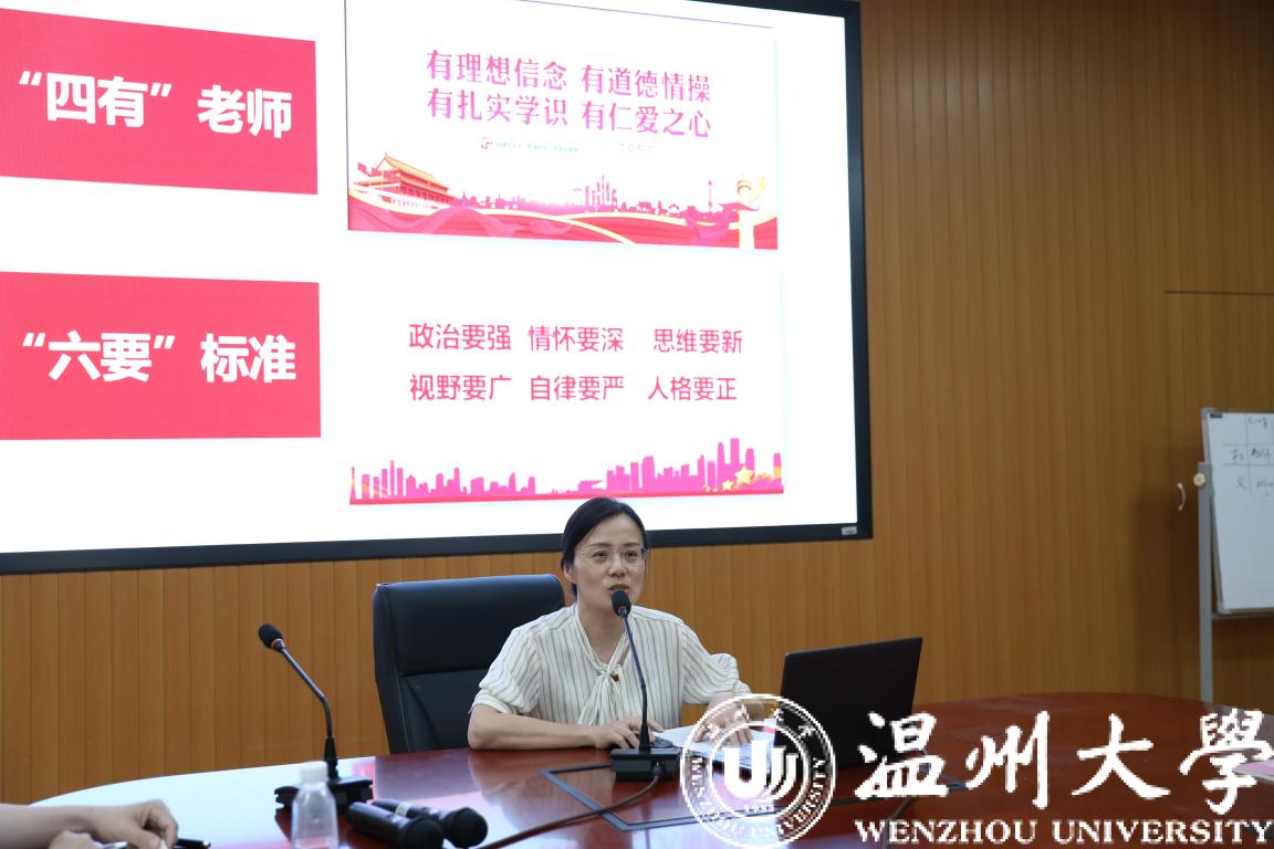 为深入贯彻落实教育部《高等学校课程思政建设指导纲要》、浙江省教育厅《浙江省高校课程思政建设实施方案》以及《黄色视频 推进课程思政实施方案》等文件精神,全面推动学校课程思政体系建设,构建三全育人格局,落实立德树人根本任务,按照学校统一部署,5月11日下午,黄色视频 集中组织全体教师在103会议室以线上线下相结合的形式,召开课程思政建设研讨会。学院领导班子成员、全体教师参加了此次会议。会议由学院党委书记林钦主持。