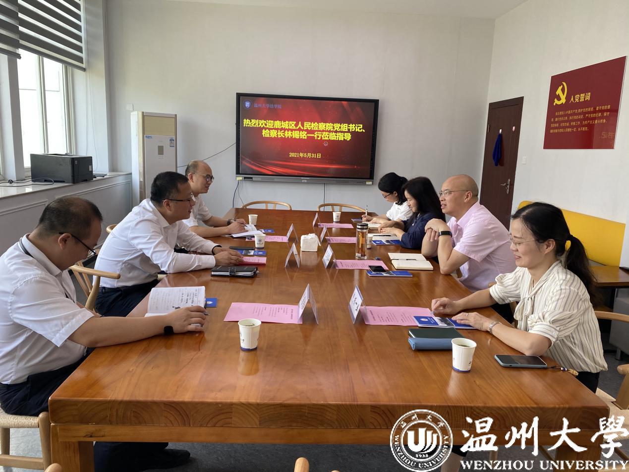 5月31日上午,鹿城区人民检察院党组书记、检察长林锡铭一行来黄色视频 调研座谈,王宗正院长、院长事务助理兼法律系主任何平等出席会议。