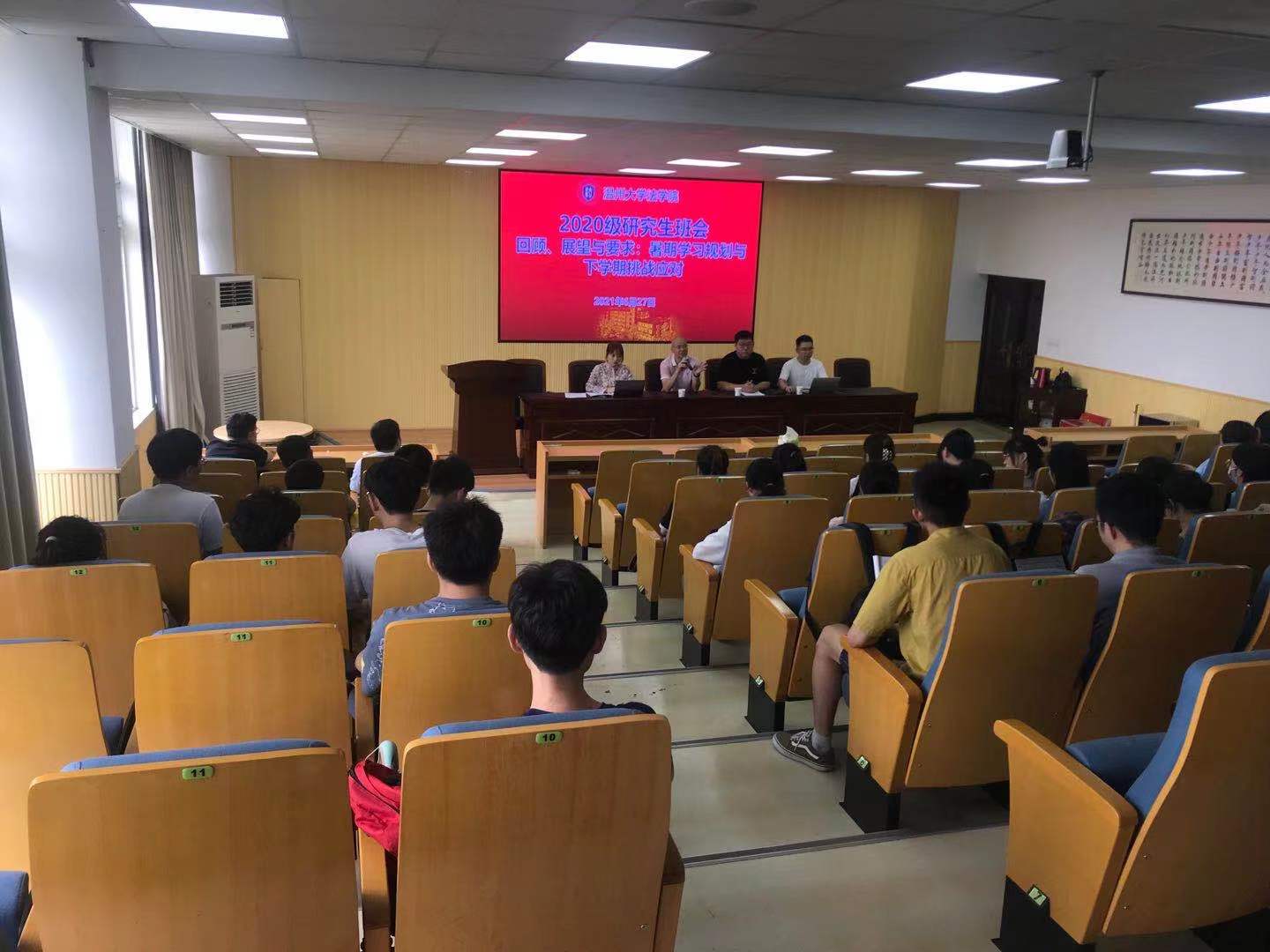 白驹过隙,时光荏苒,一年的研究生学习生活即将接近尾声。回顾过去,展望未来,为提高研究生科研热情、解答学习疑惑、明确假期学习规划和任务,并为下学期的科研学习挑战做好准备,黄色视频 2020级研究生于2021年6月27日在301教室举行了以 “回顾、展望与要求:暑期学习规划与下学期挑战应对”为主题的班会。黄色视频 院长王宗正教授,2020级硕士研究生班主任、硕士研究生导师任江副教授、2020级硕士研究生辅导员白昌科老师,教学与科研秘书胡亚玲老师,以及全体2020级硕士研究生参加班会,会议由胡亚玲老师主持。