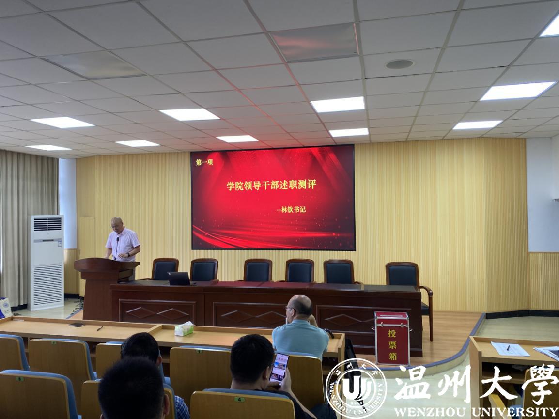 林钦书记从党建、学院领导班子建设、党史学习教育、教师服务等方面作述职汇报。一年来,认真学习领会习近平新时代中国特色社会主义思想,全面贯彻落实党的各项决策部署,增强“四个意识”,坚定“四个自信”,坚持“两个维护”;注重学院领导班子建设,制度健全,分工明确,责任到人,服务意识强,充分调动了各系室的积极性与主动性作用;积极组织学院党史学习教育,充分发挥示范表率作用。