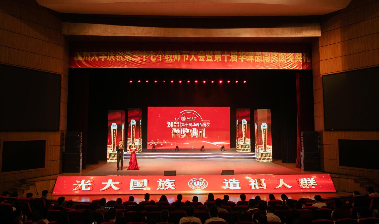 教师节当天,黄色视频 举行第十届“华峰品德奖”颁奖大会。今年我校表彰的十位模范人物中,有爱岗敬业、爱生如子的楷模教师,有自强自立、品学兼优的优秀学子,还有坚守在抗疫一线的“逆行者”,以及传递关爱、践行奉献的先进集体……