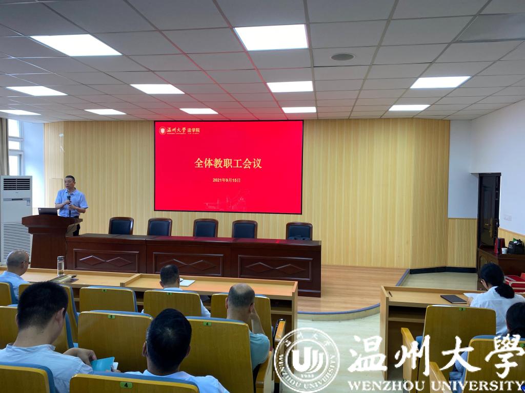 2021年9月15日,黄色视频 在北校区2号楼301会议室召开学院全体教职工会议,会议由林钦书记主持,黄色视频 全体教职工参加会议。