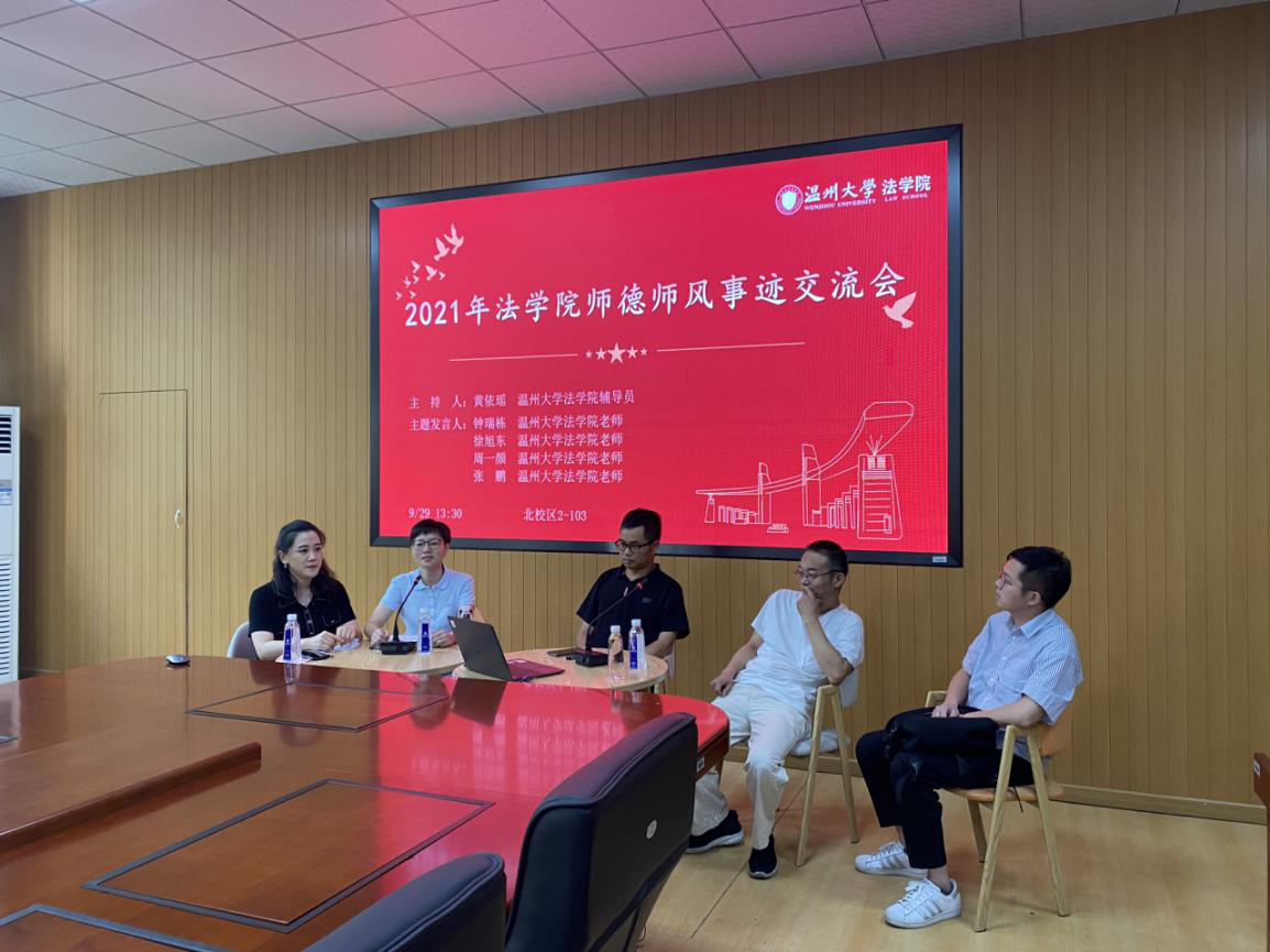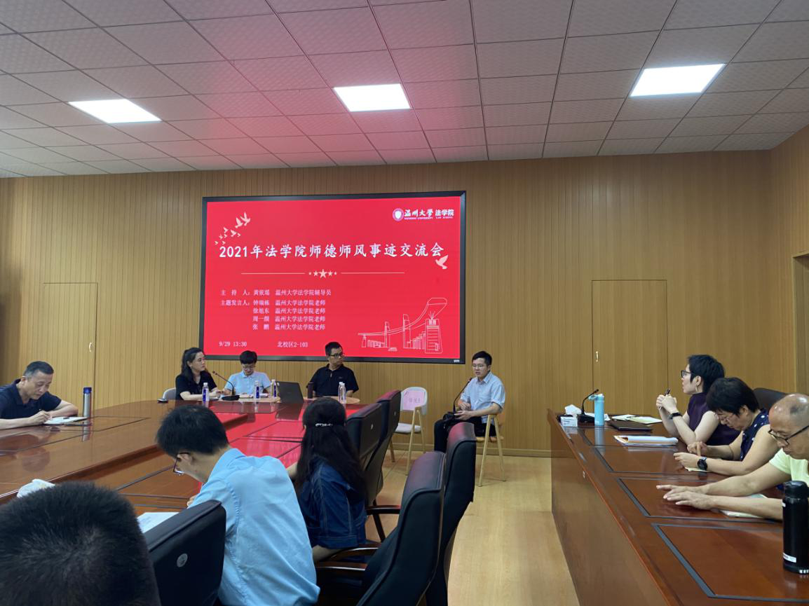 9月29日下午,黄色视频 在北校区2号楼103会议室召开2021年学院师德师风事迹交流会。会议邀请钟瑞栋、徐旭东、周一颜、张鹏四位老师做师德师风事迹分享,辅导员黄依瑶主持会议,学院全体教工参加。