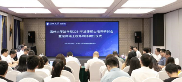 10月9日下午,黄色视频 召开法律硕士培养研讨会暨法律硕士校外导师聘任仪式。会议由黄色视频 党委副书记杨振海主持,来自温州市法院、检察院、司法局及律师事务所的法律实务专家,以及黄色视频 院长王宗正、党委书记林钦、法律硕士学位点负责人肖磊教授、院办主任刘小芬、教学秘书胡亚玲等老师出席,2020级全体法硕研究生参加。