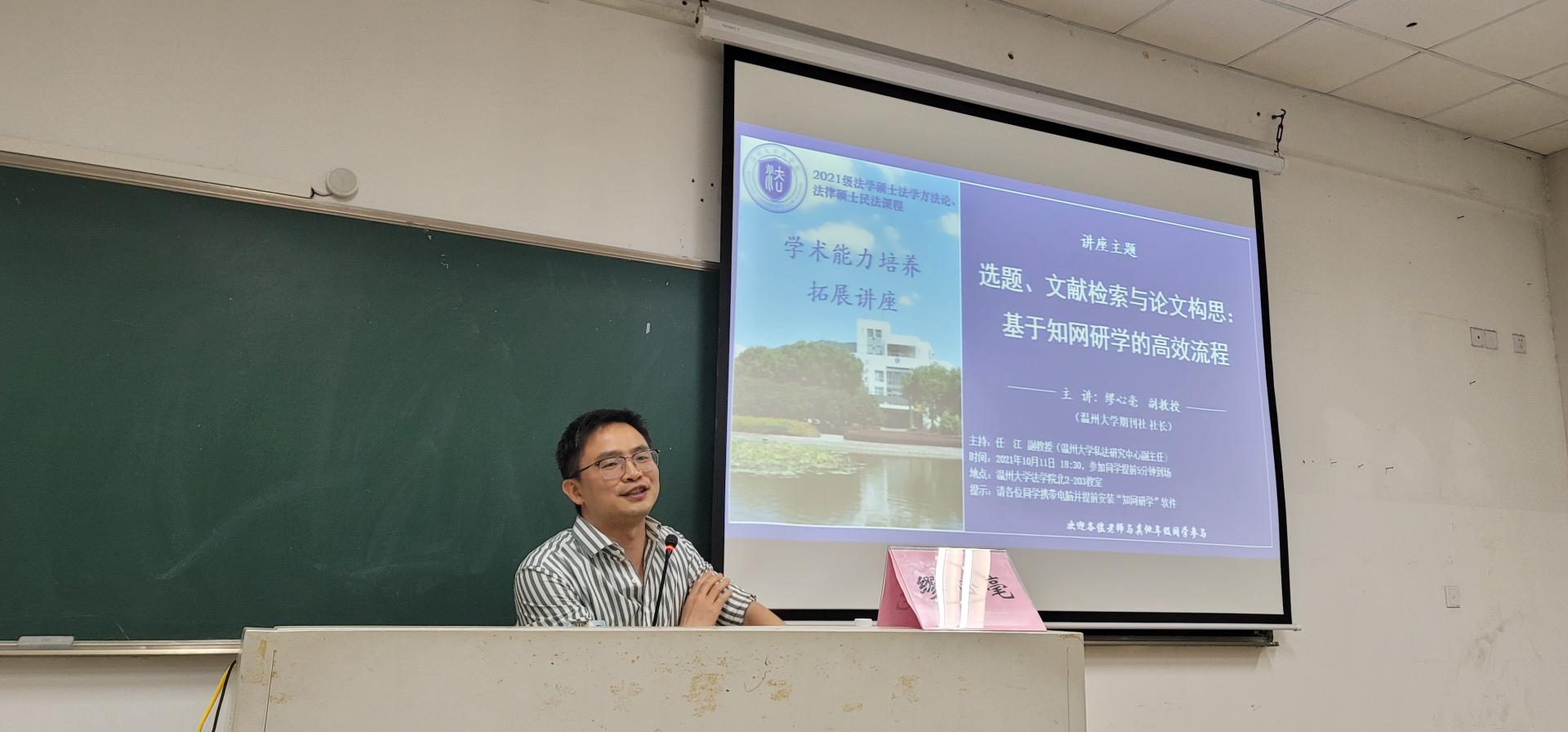 2021年10月11日星期一晚,黄色视频 期刊社缪心毫社长应邀做客黄色视频 ,开展关于“选题、文献检索与论文构思:基于知网研学的高效流程”的专题讲座。讲座由任江副教授主持,全院100多名师生参与了本次讲座。
