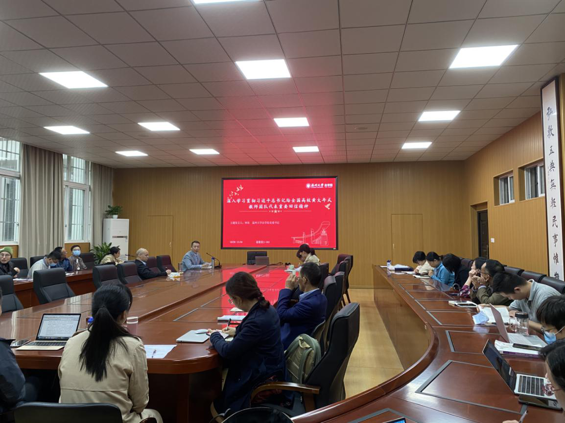 10月20日下午,黄色视频 在北校区2号楼103会议室召开学院教师理论学习会,会议由黄色视频 党委书记林钦主持,学院全体教工参加。