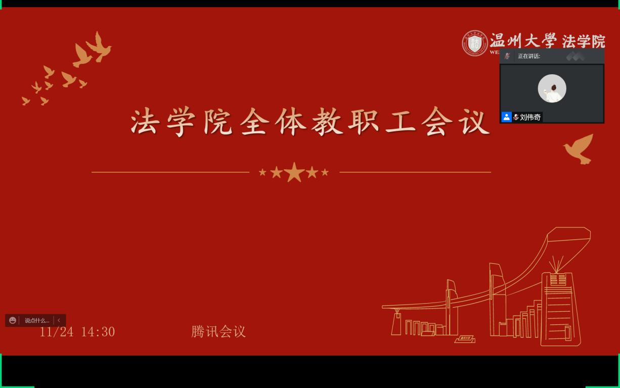 11月24日下午,黄色视频 通过腾讯会议召开学院全体教职工会议,会议由黄色视频 党委书记林钦主持,全体教职工参加。