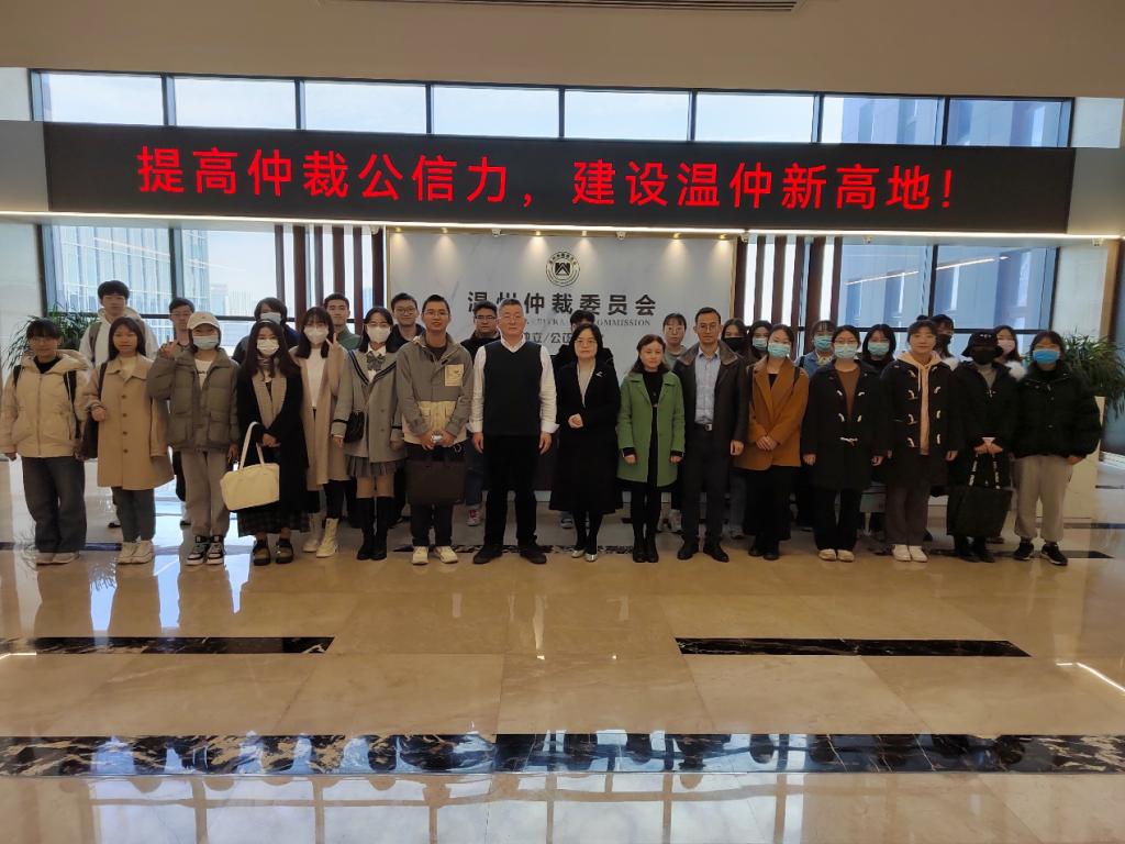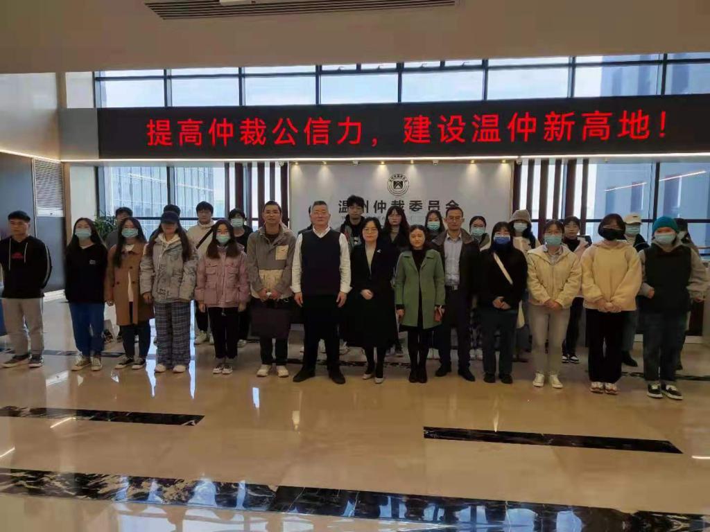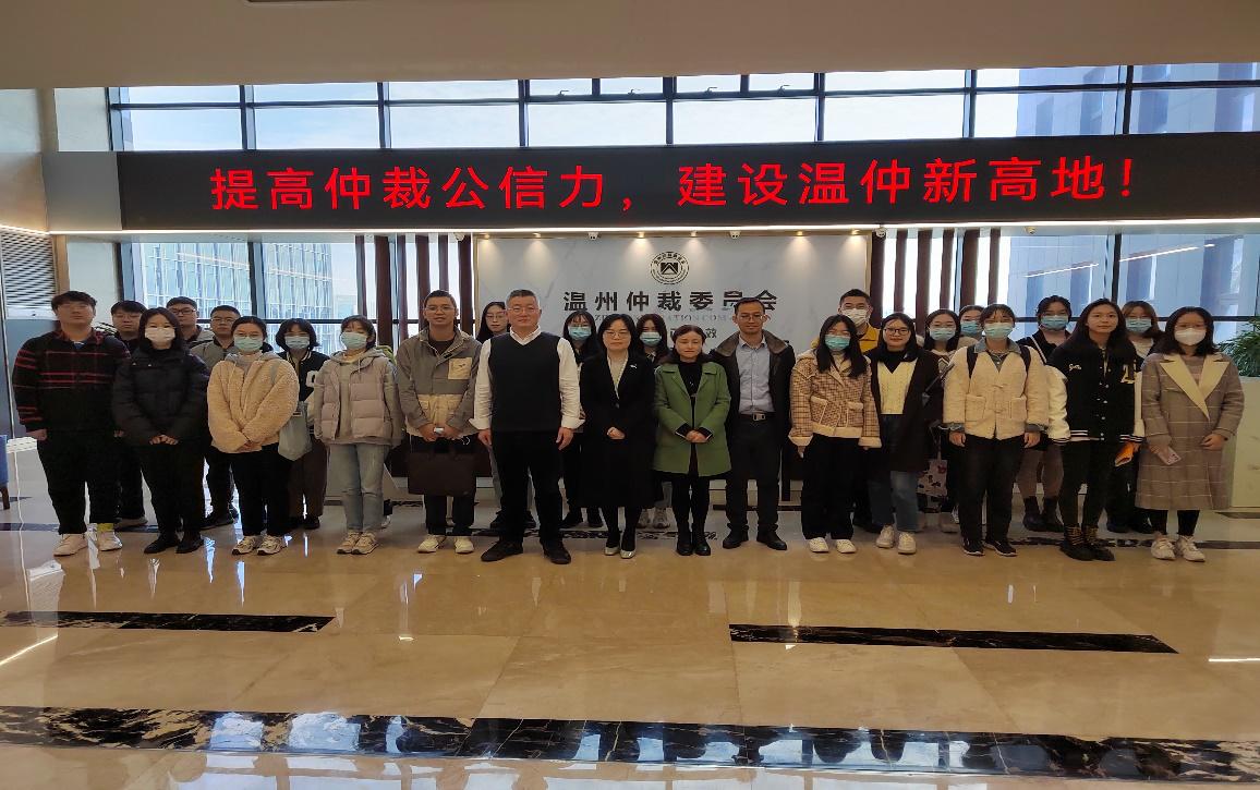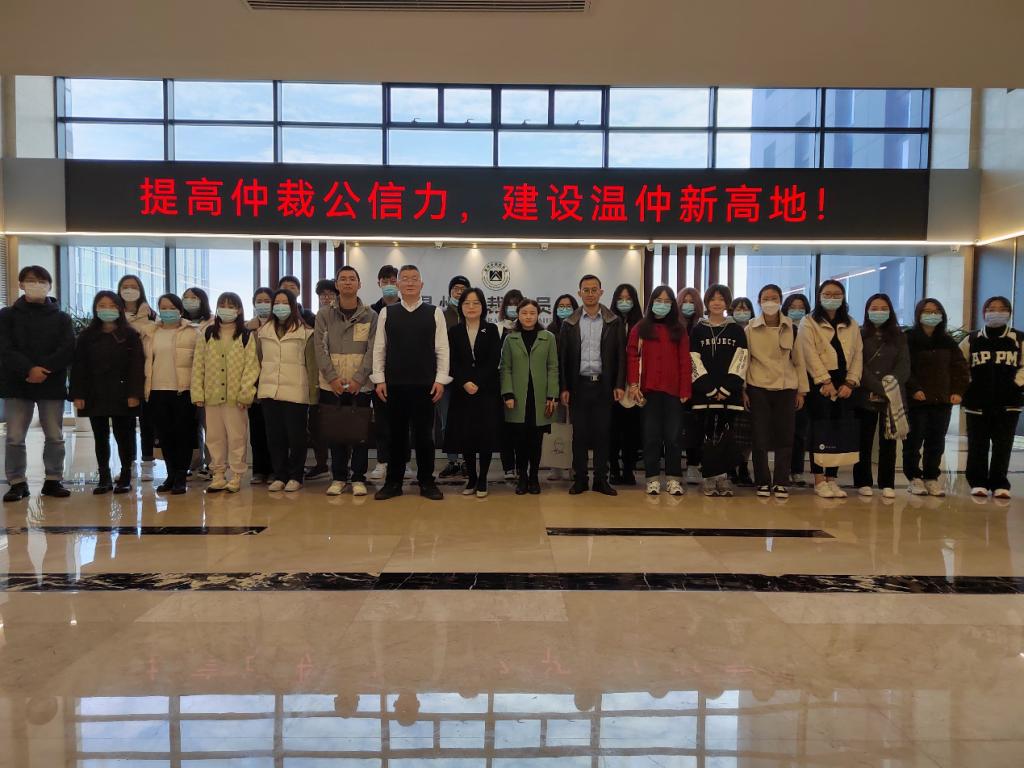 2021年11月25日,黄色视频 2018级法学专业本科生赴温州仲裁委员会开展实践教学活动,课程组指导老师李勇军、何平、柯宇航、邱杓丹带队前往。