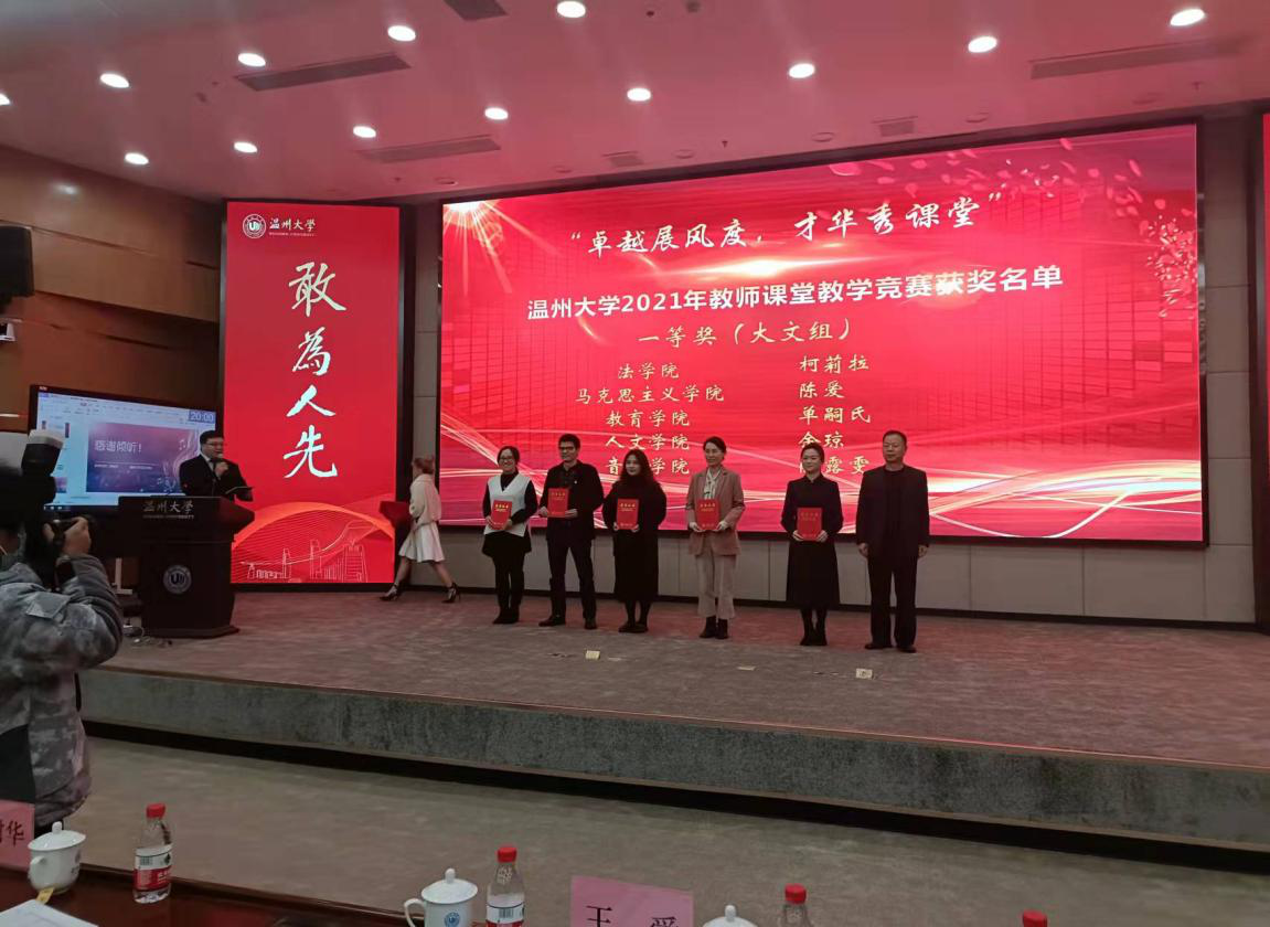 学院在今年学校第三届教师课堂教学竞赛中取得好成绩。学院共有6位选手参与学校竞赛,有4位选手获奖。其中,柯莉拉老师获得一等奖,陈以拓、周浩仁、侯丽维等三位老师获得二等奖,奖项数量在全校并列第一。同时,学院还获学校2021年教师课堂教学竞赛优秀组织奖,这是学院在三届课堂教学竞赛中二次获得此奖项。