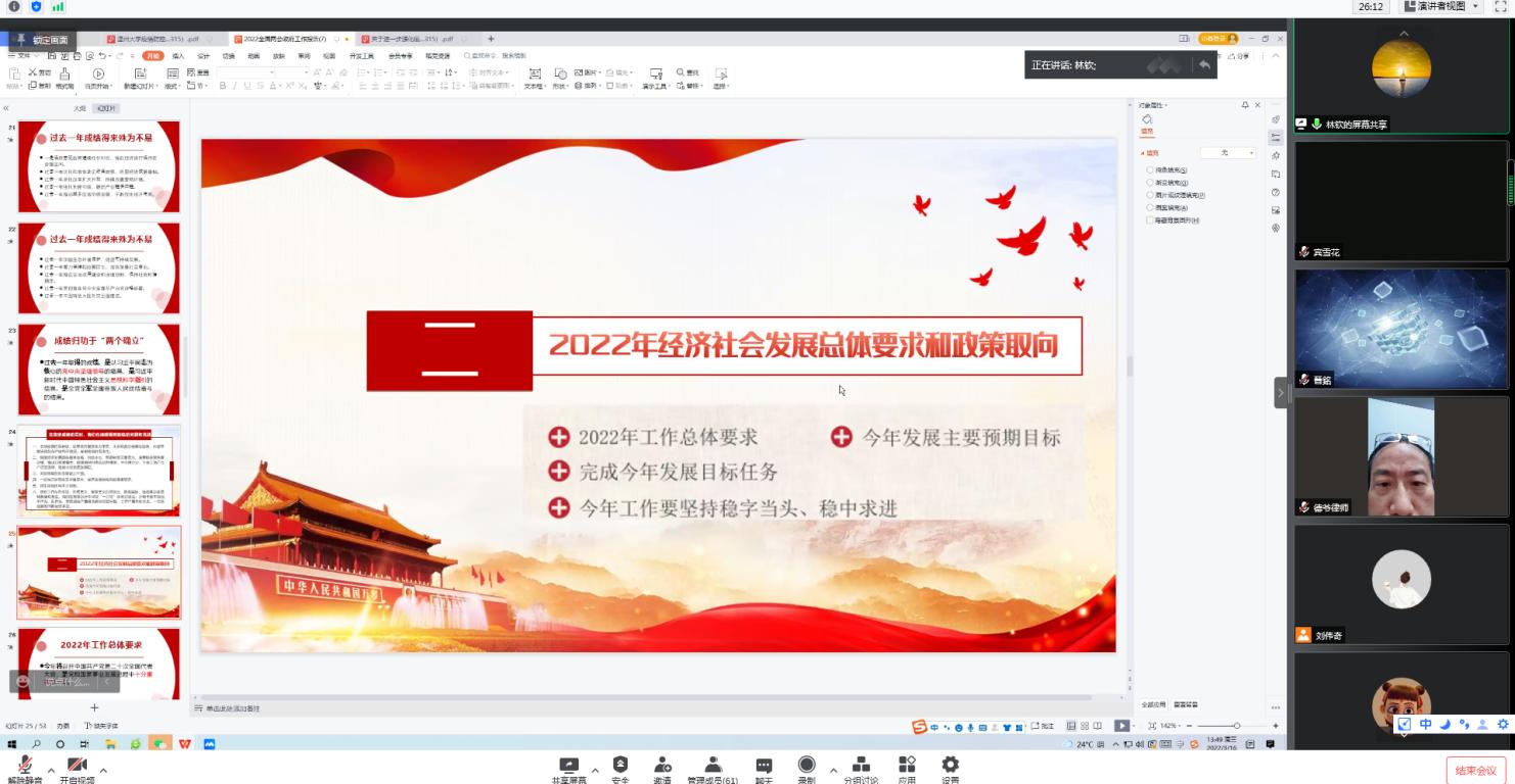 党委书记林钦带领学院全体教工学习全国两会精神。他对2021年工作回顾、2022年经济社会发展总体要求和政策取向和2022年政府工作任务进行了解读。他强调,黄色视频 全体教工要更加紧密地团结在以习近平同志为核心的党中央周围,高举中国特色社会主义伟大旗帜,要学深学透两会精神,忠诚拥护“两个确立”、坚决做到“两个维护”,贯彻落实两会精神以实际行动迎接党的二十大胜利召开。