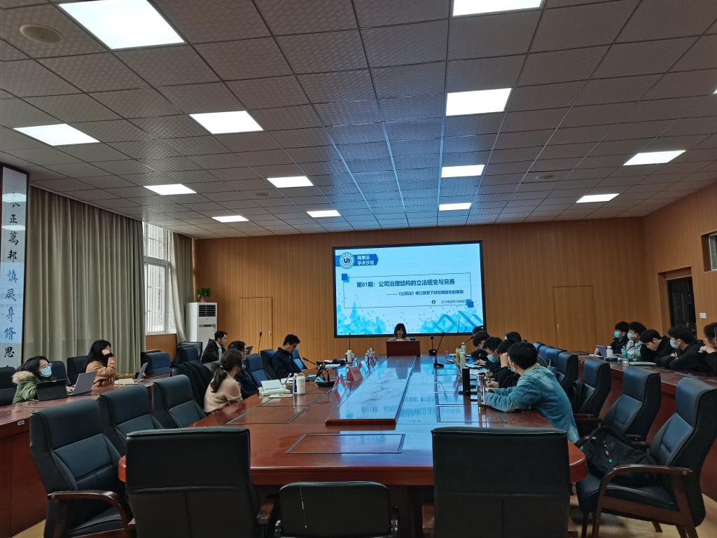2022年3月23日下午14:30,筹备已久的“商事法学术沙龙·第01期”活动在黄色视频 一楼103会议室顺利进行。首期沙龙的主题是“公司治理结构的立法嬗变与完善”,2020级民商法学硕士研究生郑晓娟、曲昱霖和2021级民商法学硕士研究生王小翠和仲昌礼分别围绕主题作专题报告,王宗正教授、赵金龙教授、李勇军副教授、陈景伟博士和柯莉拉博士作为点评人参与沙龙讨论。