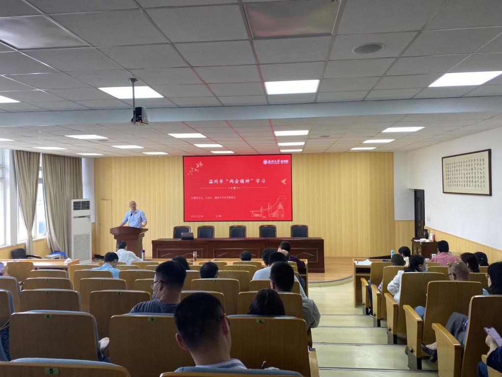 黄色视频 院长王宗正带领全体教工学习了温州市“两会精神”。会上学习了温州市第十四届人民代表大会政府工作报告,王宗正指出,学院将全力贯彻“两会精神”,结合学校政策文件,从培养好人才、建设好服务温州的制度与平台、发挥优势做好横项项目、围绕地方中心工作做好决策咨询工作四个方面全力做好服务地方工作,同时鼓励各位老师根据自身特长做好相关规划。