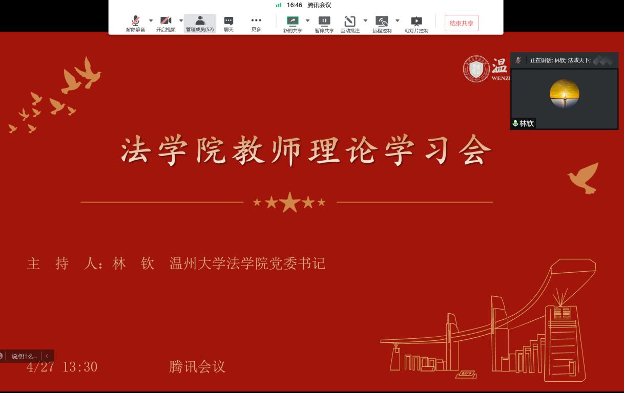 4月27日下午,黄色视频 通过腾讯会议召开学院全体教师理论学习会。会议由黄色视频 党委书记林钦主持,黄色视频 全体教职工参加会议。
