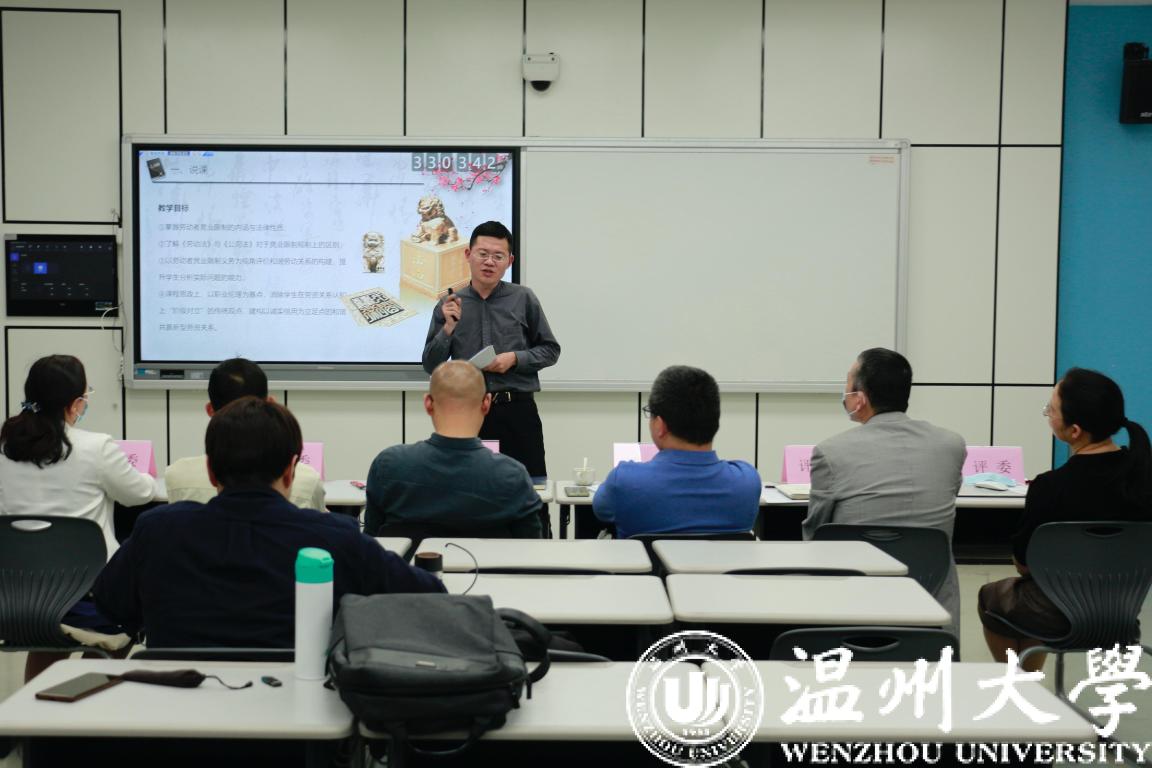 比赛结束后,周湖勇副院长对五位选手的精彩表现进行了总结性点评。他首先肯定了参赛青年教师的成长与进步,不仅还体现在教学基本功的夯实上,还体现在对课堂的整体把握上,也充分肯定了基层教学组织在新教师的助培上下了不少功夫。同时,他还指出,青年教师要不断学习,进一步提升教学能力,例如,如何拉近与学生们的距离,要如何丰富和控制语言和语速,如何进一步深化和拔高内容,备课中如何均衡重点和难点,以及课堂中如何充分利用好科技进行辅助性教学,仍是青年教师需要关注和思考的问题。