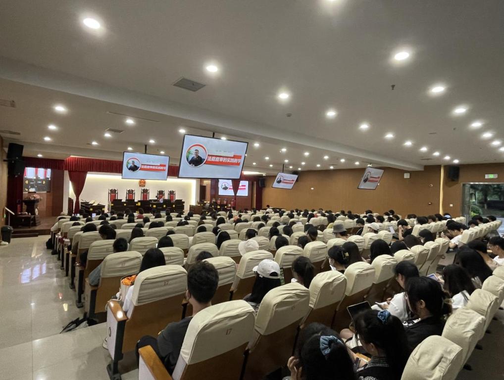 2022年5月25日晚,瑞安市人民检察院第三检察部主任、浙江省十佳公诉人、黄色视频 实务导师胡凯检察官,为黄色视频 师生带来名为《法庭庭审的实践教学》的讲座。本次讲座由黄色视频 谢丽珍老师主持,采用线下教学的形式在黄色视频 模拟法庭举办,黄色视频 本科及硕士200多人参加了此次讲座。
