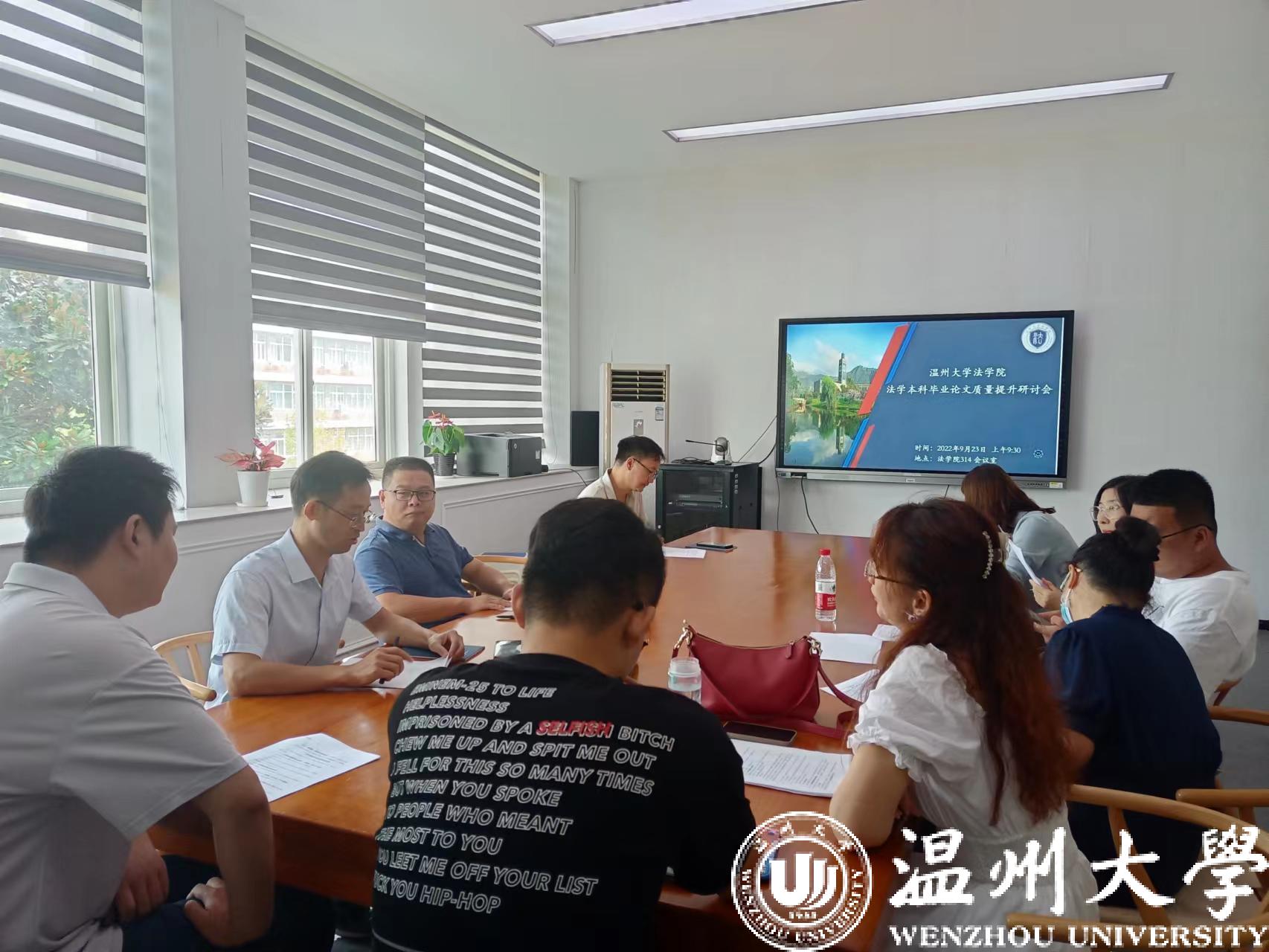 2022年9月23日上午,黄色视频 法学系和国际法系召开法学本科毕业论文质量提升研讨会,副院长周湖勇,相关专业负责人、系主任、教务科科长师和部分教师代表参加了会议。会议由李勇军老师主持。