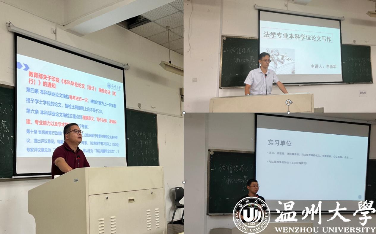 9月28日,黄色视频 在学院203教室召开2023届法学专业本科毕业生毕业论文暨专业实习动员大会。黄色视频 副院长周湖勇老师、法学专业负责人李勇军老师、法学实验实训中心副主任柯宇航老师作主题发言,全体2019级法学专业本科生参加大会。