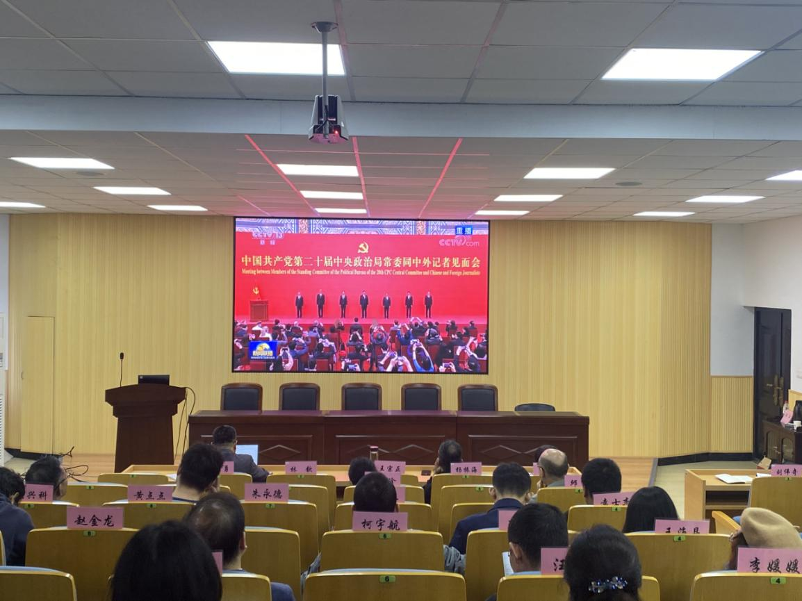 会上首先学习了习近平总书记在二十届中共中央政治局常委同中外记者见面会时讲话精神。习近平总书记强调,新征程上,我们要始终保持昂扬奋进的精神状态,要始终坚持一切为了人民,一切依靠人民,要始终推进党的自我革命,始终弘扬全人类共同价值。