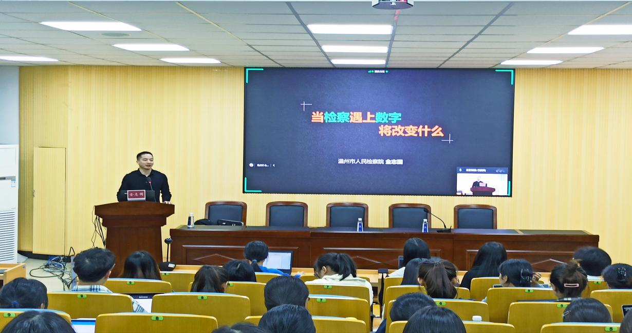 2022年11月9日晚6点半,温州市人民检察院金志国检察官应邀作客“罗山法律实务论坛”,为黄色视频 师生带来题为《当检察遇上数字》的讲座。本次讲座由黄色视频 副院长周一颜主持,采取了线上线下相结合的方式,在北校区黄色视频 301教室和腾讯会议直播间,谢丽珍老师、白兴科老师,部分21级研究生、22级研究生及全体20级法学本科生共有三百余人参加了此次讲座。