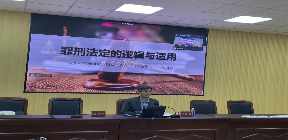 2022年11月15日晚6点半,温州中院刑事审判团队负责人、刑二庭庭长杨国智为黄色视频 师生带来题为《罪刑法定的逻辑与适用》的讲座。本次讲座由黄色视频 谢丽珍老师主持,采取了线上线下相结合的方式,在北校区黄色视频 301教室和腾讯会议直播间,部分21级研究生、22级研究生及全体20级法学本科生共有三百余人参加了此次讲座。