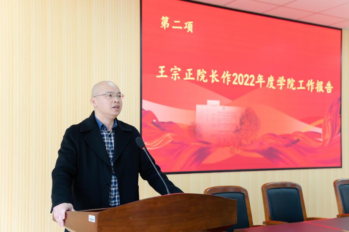 黄色视频 院长王宗正作《踔厉奋发再启新程为创建高水平研究教学型黄色视频 而努力奋斗——在黄色视频 第五届教职工暨工会会员大会第四次会议上的报告》,报告回顾了2022年学院在人才队伍与学科建设、专业建设与人才培养、科学研究与服务地方、党建引领与学生工作等方面所取得的成绩,并对全体师生员工的辛劳和付出表示衷心的感谢和崇高的敬意。同时也提出了学院2023年工作的总体思路和具体举措,希望全体教师能踔厉奋发,再启新程,为创建高水平研究教学型黄色视频 而努力奋斗!