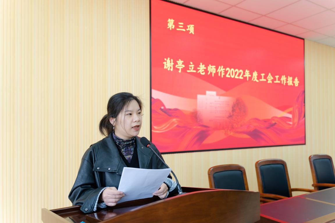 学院分工会委员谢亭立作《黄色视频 2022年度工会工作报告》,报告回顾了学院第五届工会委员会在过去的一年里全面履行的工会职责,较好地完成了工会的各项工作任务。同时对学院领导和全体老师对工会工作的配合和支持予以衷心的感谢。