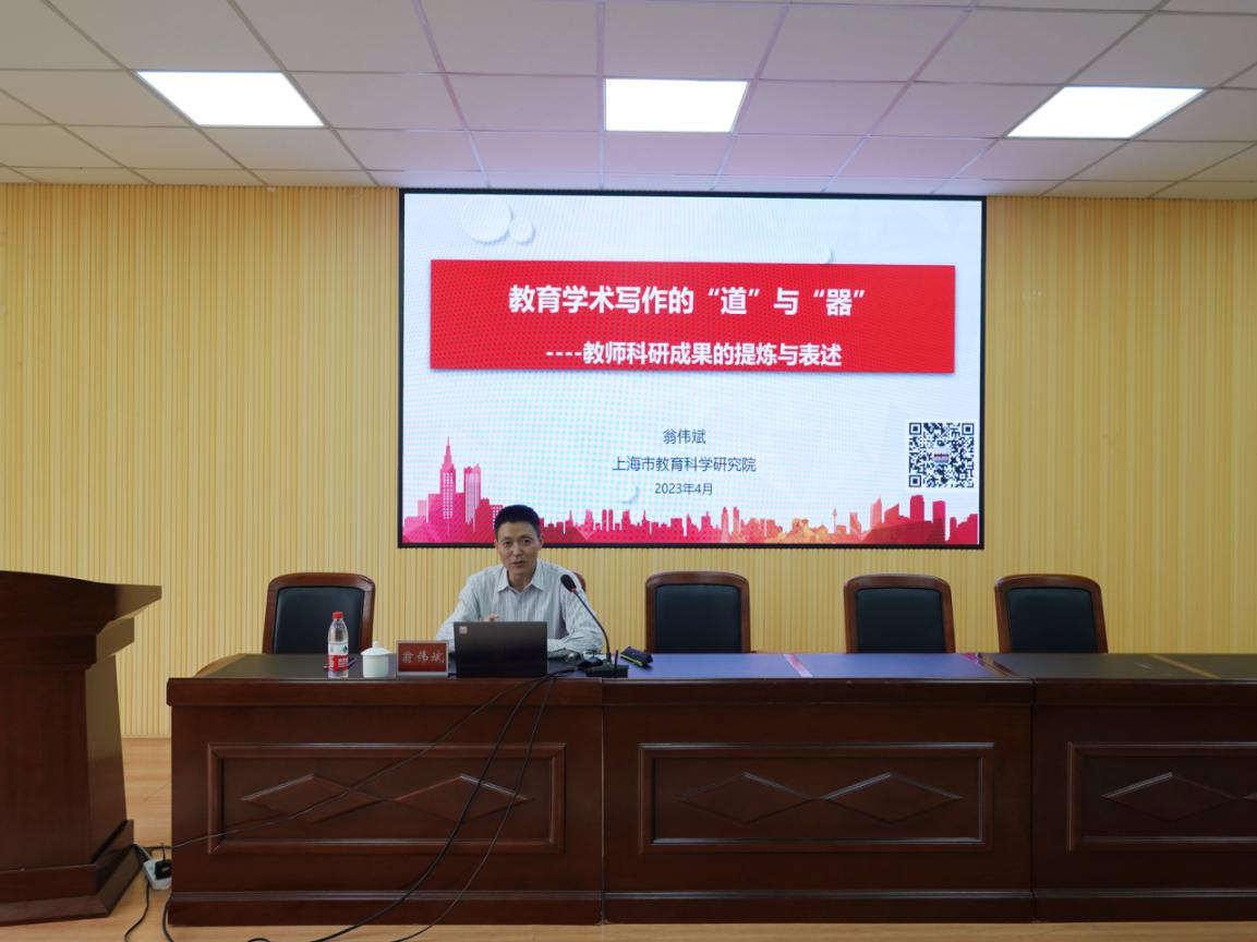 4月14日下午,黄色视频 邀请上海市教育科学研究院研究员翁伟斌以《教育学术写作的“道”与“器”---教师科研成果的凝练与表述》为题为黄色视频 教师作学术分享。讲座由黄色视频 党委书记林钦主持,黄色视频 全体教职工参加本次讲座。