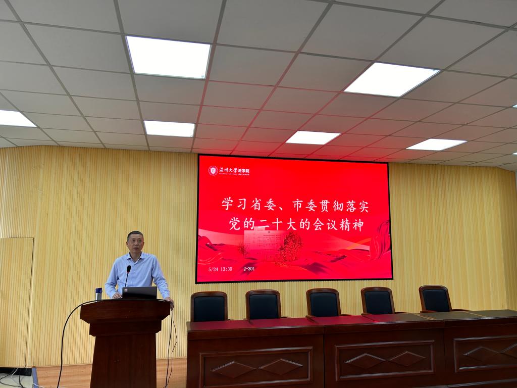 会上首先由林钦书记领学了省委、市委贯彻落实党的二十大的会议精神。中国共产党浙江省第十五届委员会第二次全体会议决定:一、全面深入学习领会党的二十大精神,鉴定捍卫“两个确立”、坚决做到“两个维护”;二、对标落实全面建设社会主义现代化国家系统部署,在奋力推进“两个先行”中开辟干在实处、走在前列、勇立潮头新境界;三、体系化长效化抓好学习宣传贯彻,确保党的二十大目标任务落实落地见效。中国共产党温州市第十三届委员会第三次全体会议决定:一、以高度的政治自觉全面贯彻落实党的二十大精神,切实把思想和行动统一到党中央的决策部署上来;二、坚持以党的二十大精神为指引,努力在中国式现代化进程中续写温州创新史;三、对标对表党的二十大战略部署,奋力在新时代新征程上创造性的更大业绩;四、完善体系化长效化学习宣传贯彻机制,确保党的二十大精神落实落地见效。