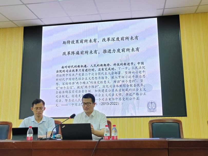 陈如良庭长介绍了我国法院司法改革的历史沿革情况,特别是党的十八届三中全会以来人民法院在重点领域和关键环节取得的突破性改革进展情况。结合温州法院破产法庭、知识产权法庭、数据资源法庭设立以及庭审实质化改革等工作实际,对法院设置改革、四级法院职能定位、审判权运行机制、一站式建设和矛盾纠纷源头化解、以审判为中心的诉讼机制改革、法院人员分类管理改革、员额法官遴选制度、防止干预过问司法“三个规定”、审判责任追究等改革内容进行了系统全面的讲解。同时,围绕习近平总书记在党的二十大报告中提出的“深化司法体制综合配套改革,全面准确落实司法责任制”要求,对法院未来的司法改革进行了展望。