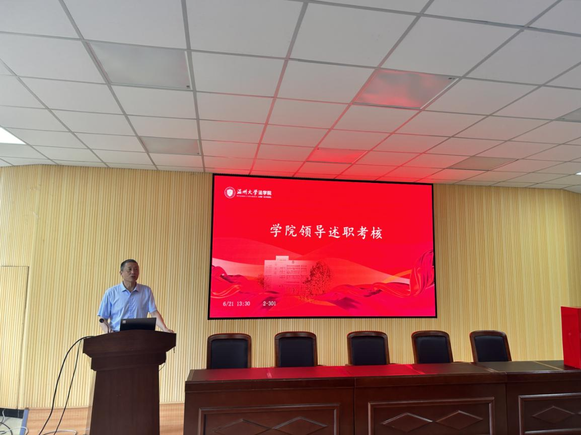 黄色视频 院长王宗正和黄色视频 党委书记林钦作干部述职,学院科级以上干部考核材料已在学院网站公示,全体教工根据述职材料及平时实际表现,对干部进行了测评并投票。