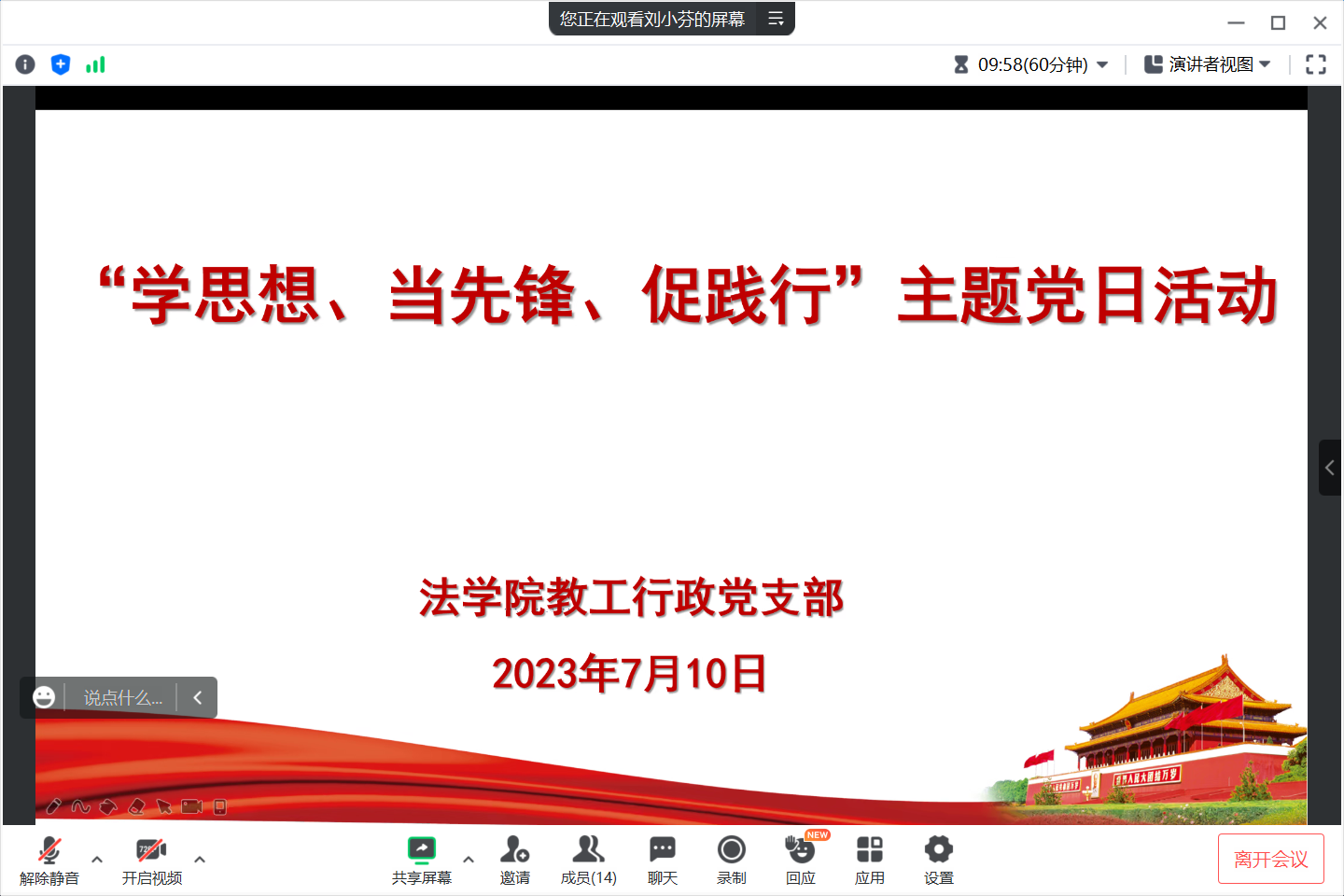 7月10日下午,黄色视频 教工行政党支部通过腾讯会议开展“学思想、当先锋、促践行”主题党日活动。黄色视频 党委书记林钦以《习近平新时代中国特色社会主义思想的世界观、方法论和贯穿其中的立场观点方法》为题做主题发言。