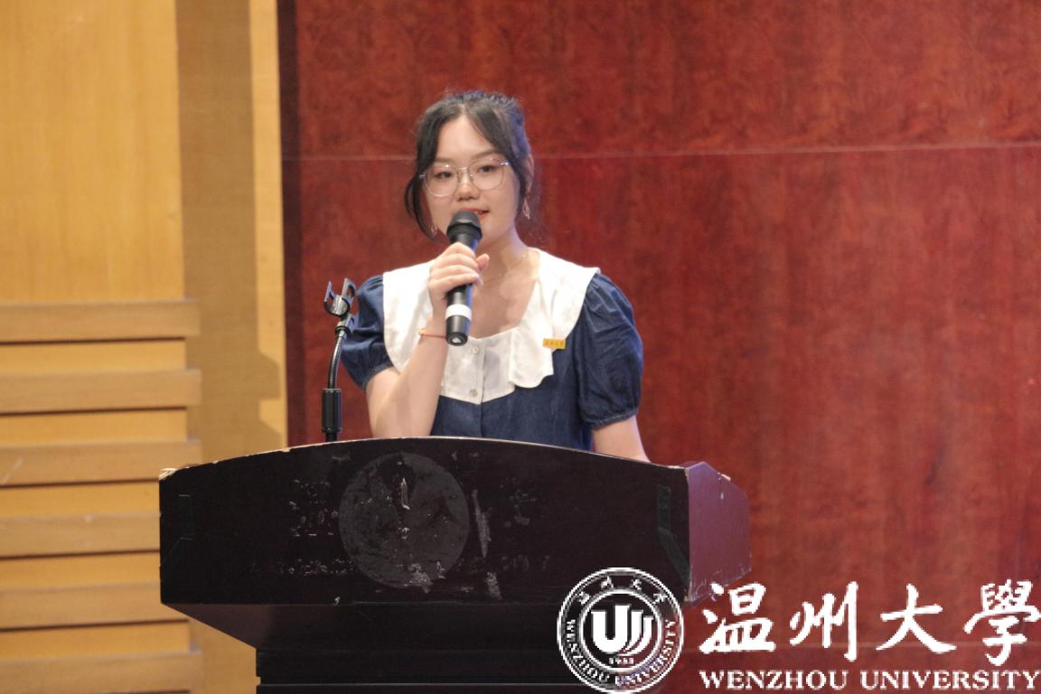 研究生新生代表杨钰莹同学发言。杨钰莹同学讲述了5年在温大黄色视频 的求学经历,提出了对自己未来漫漫求学路的期望,潜心磨砺、携手同行,共同谱写壮美的青春篇章。