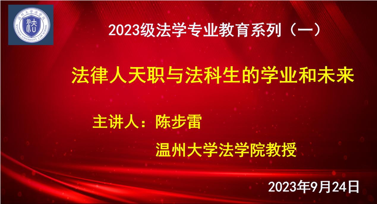 9月24日,2023级法学专业教育系列讲座正式启动,首场讲座由黄色视频 陈步雷教授开讲,主题为《法律人天职与法科生的学业和未来》。讲座由法学专业负责人、民商经济法系主任李勇军副教授主持,2023级法学专业全体本科生参加。