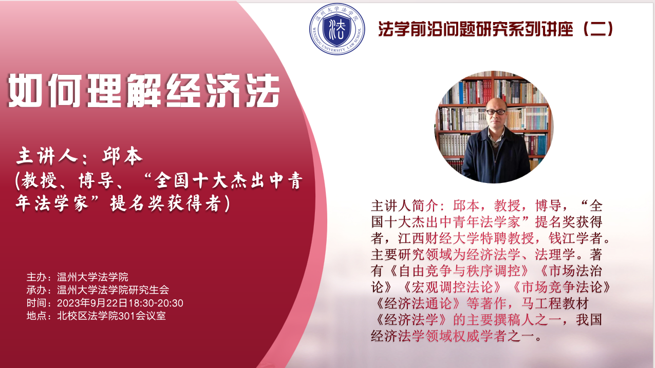 讲座预告|“法学前沿问题研究”系列讲座(二)| 邱本:如何理解经济法
