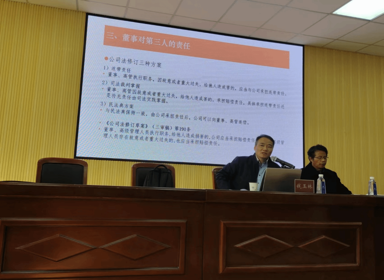 本次讲座以“公司法制度构建”为中心,结合《公司法草案三审稿》中的热点和难点问题,从“公司法的制度逻辑”“公司财产权的尊重”“董事对第三人的责任”“公司合同束”“审计委员会的替代性问题”等五个方面展开。