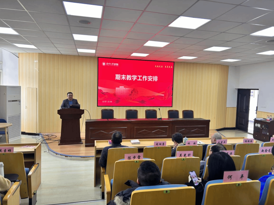 周湖勇作期末教学工作安排。提醒教师期末试卷做到规范化和标准化,认真进行成绩分析、规范平时成绩、把握试卷难易程度。同时要做好继续做好期末课堂教学工作。