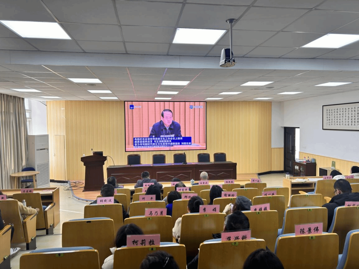 全体教师共同学习省委书记易炼红在全省宣传思想文化工作会议上的讲话精神。易炼红在会上强调,要深入学习贯彻习近平文化思想,对标落实习近平总书记考察浙江重要讲话精神和全国宣传思想文化工作会议精神,牢记“在建设中华民族现代文明上积极探索”殷殷嘱托,感恩奋进再出发、守正创新强担当,加快建设高水平文化强省、奋力打造新时代文化高地,奋力书写新时代浙江文化繁荣兴盛新篇章,为勇当先行者、谱写新篇章提供坚强思想保证、强大精神力量、有利文化条件。