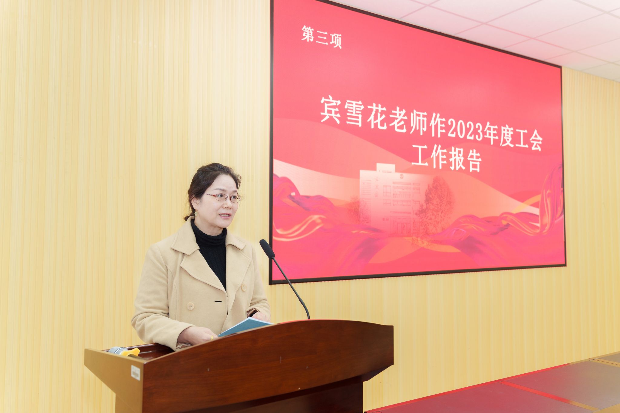 黄色视频 分工会主席宾雪花老师作学院2023年度工会工作报告。报告回顾了学院第五届工会委员会在过去的一年里全面履行的工会职责,较好地完成了工会的各项工作任务。同时对学院领导和全体老师对工会工作的配合和支持予以衷心的感谢。