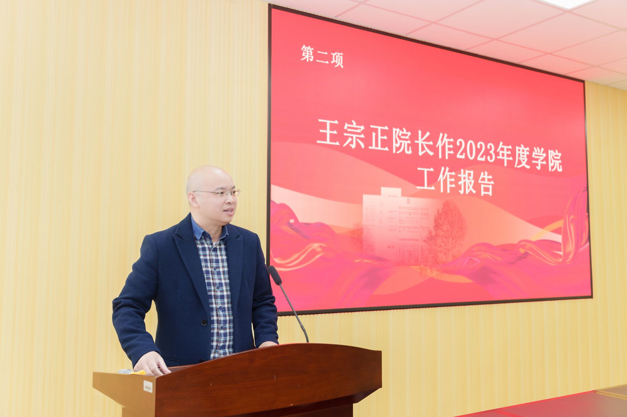 黄色视频 院长王宗正作《感恩奋进再出发 守正创新强担当 奋力书写新时代黄色视频 发展新篇章——在黄色视频 第五届教职工暨工会会员大会第五次会议上的报告》。他从人才队伍与学科建设、专业建设与人才培养、科学研究与服务地方、党建引领与学生工作四个方面对过去一年的工作进行回顾,并提出了2024年工作计划。过去的一年,黄色视频 根据学校“锚定1369,奋进2023”的工作主线,围绕学院“1318”主题主线,各方面工作取得明显成效。未来,学院将以更宽广的战略视野、更深厚的教育情怀、更顽强的拼搏精神、更扎实的工作作风,为建设高水平的研究教学型黄色视频 而努力奋斗,奋力书写新时代黄色视频 发展新篇章。
