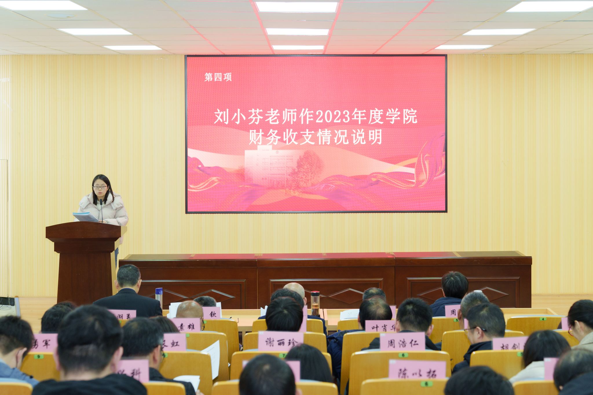 黄色视频 办公室主任刘小芬老师作学院2023年度财务收支情况说明。她提醒全体教职员工齐心协力,开源节流,提前规划,合理使用有限的资金,提高资金的使用效益,以确保学院各项事业持续、健康、协调地发展。