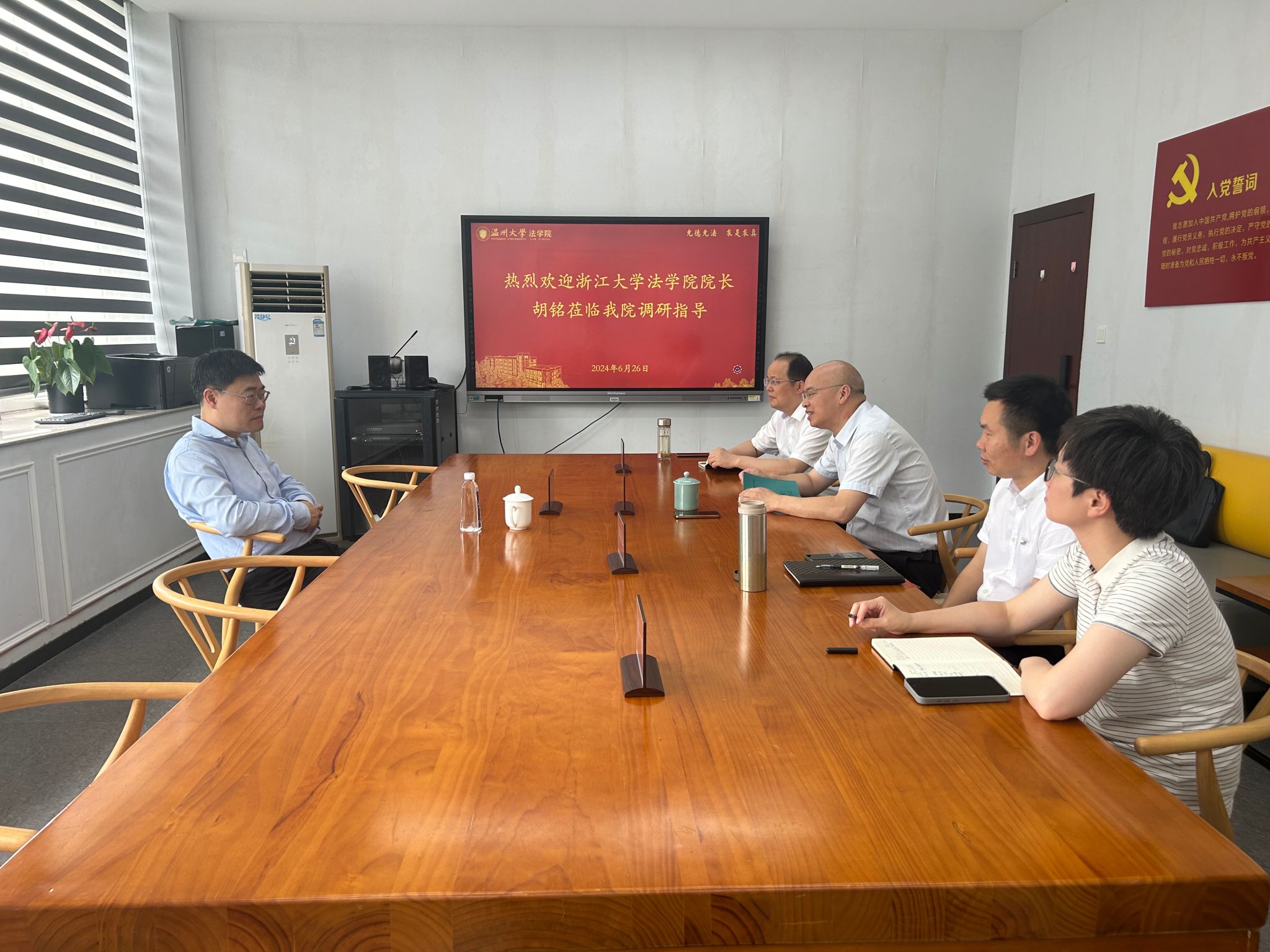 6月26日上午,浙江大学光华黄色视频 院长兼党委副书记胡铭教授莅临黄色视频 调研指导,院长王宗正、党委书记周敬业、副院长叶肖华和副院长周一颜出席座谈会。