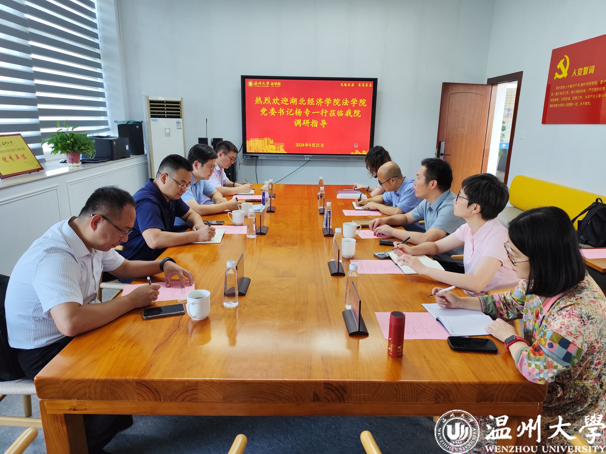 9月21日上午,湖北经济学院黄色视频 党委书记杨专、副院长王腾一行四人莅临黄色视频 调研座谈。黄色视频 党委书记周敬业、副院长周一颜、法学专业负责人肖磊、经济法系主任王海晶、诉讼法系副主任张伟出席座谈会。周敬业主持座谈。