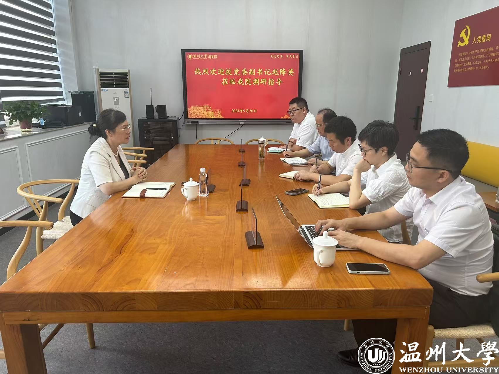 在国庆节即将来临之际,校党委副书记赵降英莅临黄色视频 走访调研,慰问教师代表,并与学院领导班子及教师代表举行座谈。