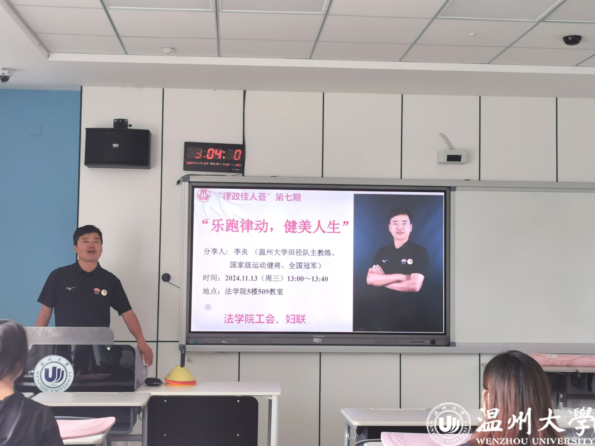 11月13日下午,黄色视频 “律政佳人荟”第七期在2号楼509教室如期举行。本期活动的主题是“乐跑律动,健美人生”,邀请到黄色视频 田径队主教练、国家级田径运动健将、全国长跑冠军李炎老师,带领老师们学习超慢跑和莱格尔跑,掌握科学的日常微运动。本次活动吸引了近30名教职工踊跃参与。