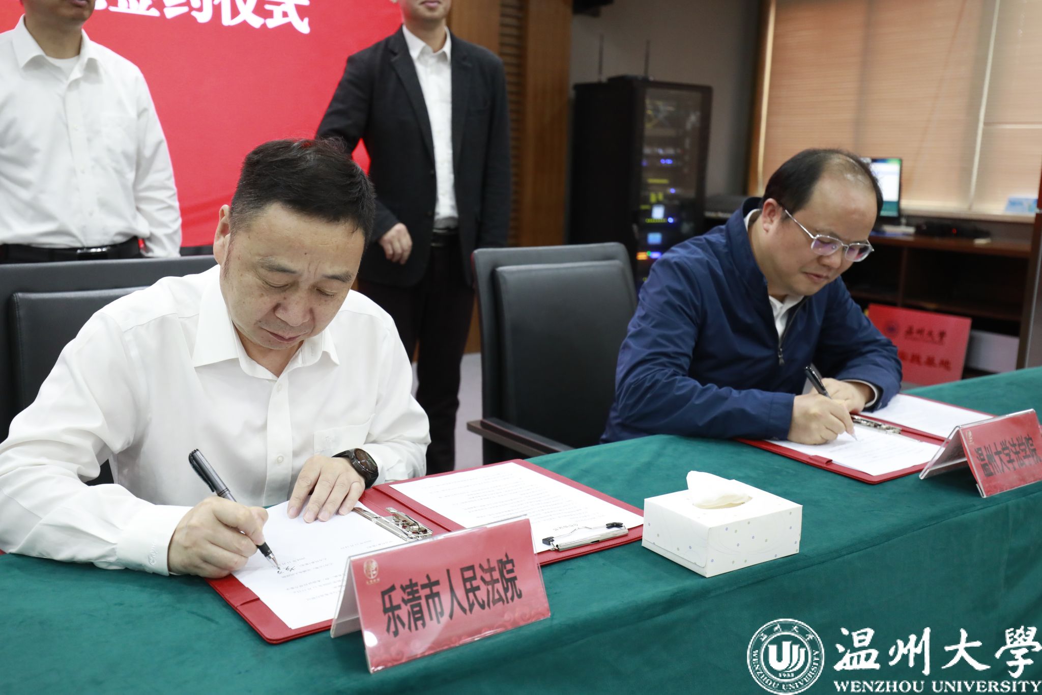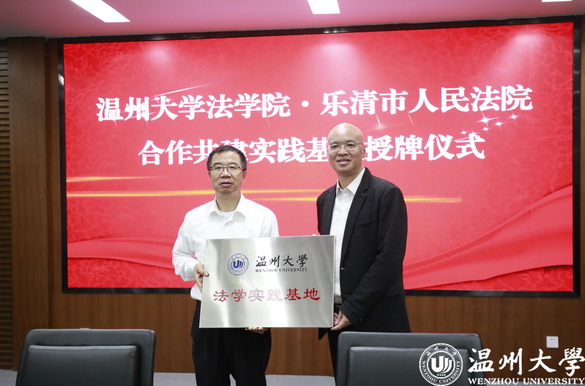 11月14日上午,黄色视频 与乐清市人民法院举行合作共建实习基地签约授牌仪式。乐清市人民法院党组书记、院长李德通、党组副书记、常务副院长黄道强,黄色视频 院长王宗正、副院长叶肖华等出席仪式。