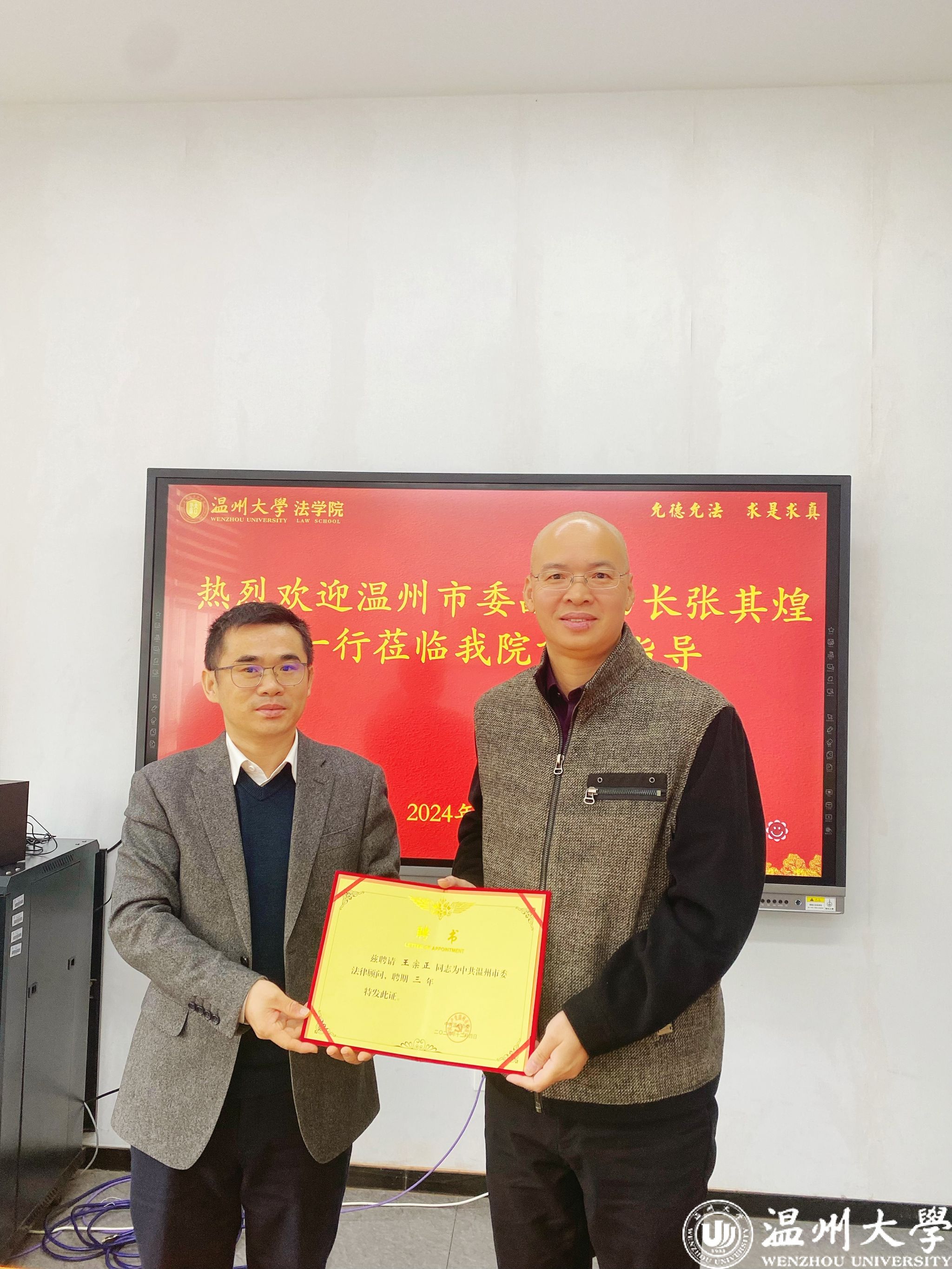 近日,中共温州市委发布《中共温州市委关于聘任第三届市委法律顾问的通知》,黄色视频 王宗正教授、项一丛副教授获聘担任中共温州市委法律顾问,聘期三年。