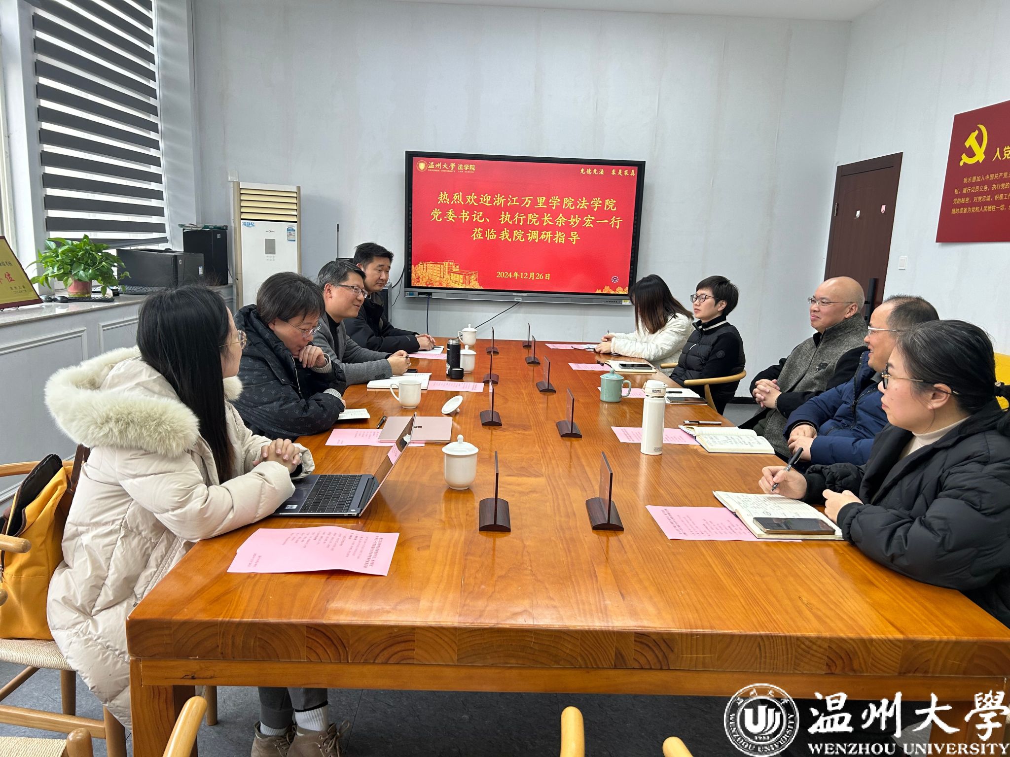12月26日下午,浙江万里学院黄色视频 党委书记、执行院长余妙宏一行就人才培养、学科建设、研究生教育来黄色视频 调研交流。学院院长、党委副书记王宗正、副院长叶肖华、副院长周一颜以及相关科室负责人参与座谈交流,座谈会由王宗正主持。