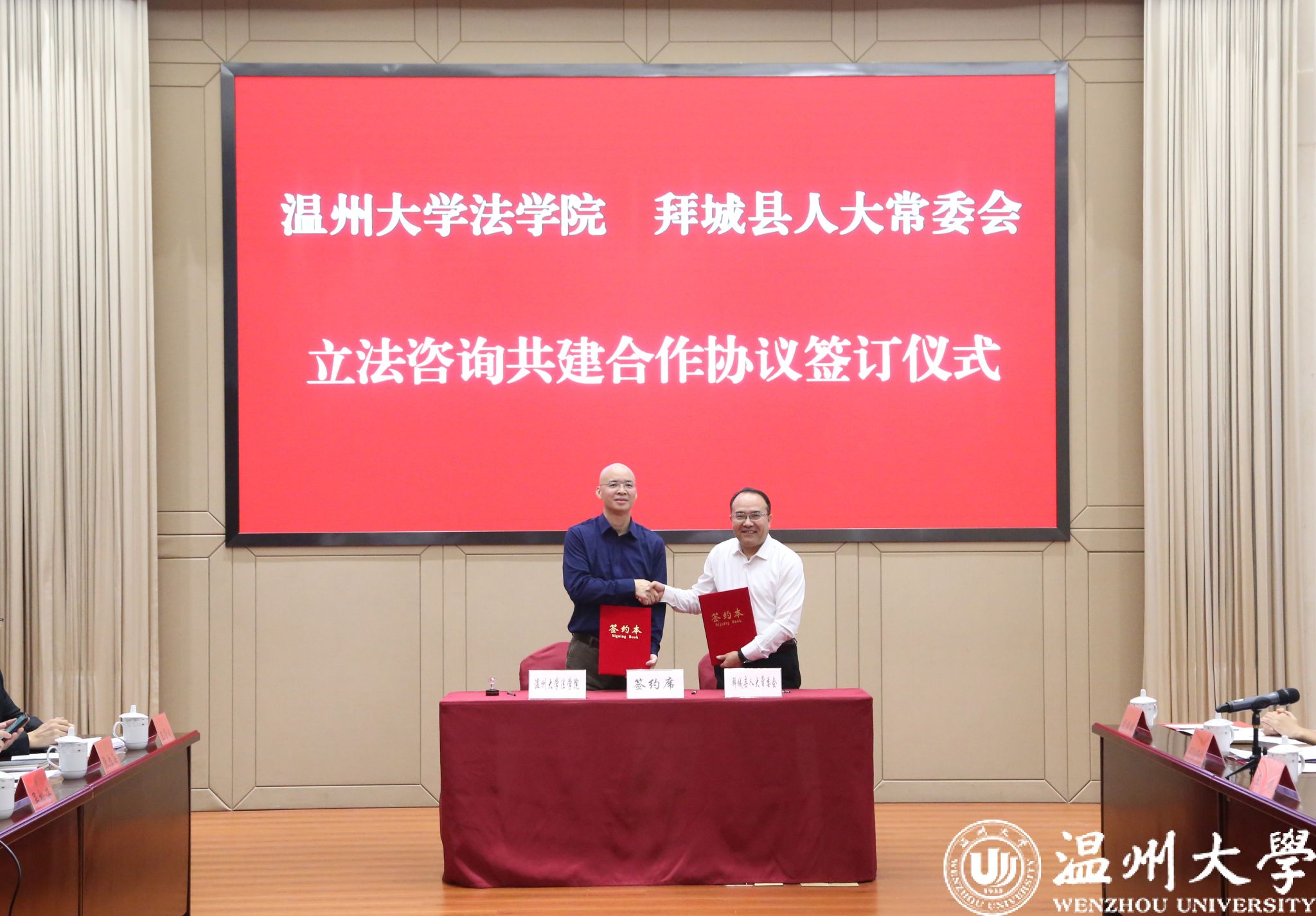 10月22日,为深入贯彻落实习近平总书记关于援疆工作的重要指示精神,充分发挥浙江温州市智力援疆优势,黄色视频 与拜城县达成立法咨询合作协议。拜城县人大常委会主任阿不来提・阿肉甫与黄色视频 院长王宗正作为双方代表共同签署协议。温州市人大常委会主任张加波、阿克苏地区人大工委副主任瞿红艳出席仪式并见证签约。